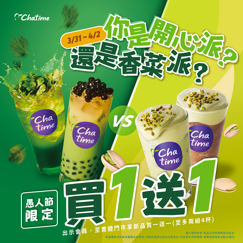 日出茶太 3.31-4.2 香菜開心果系列 買1送1!
