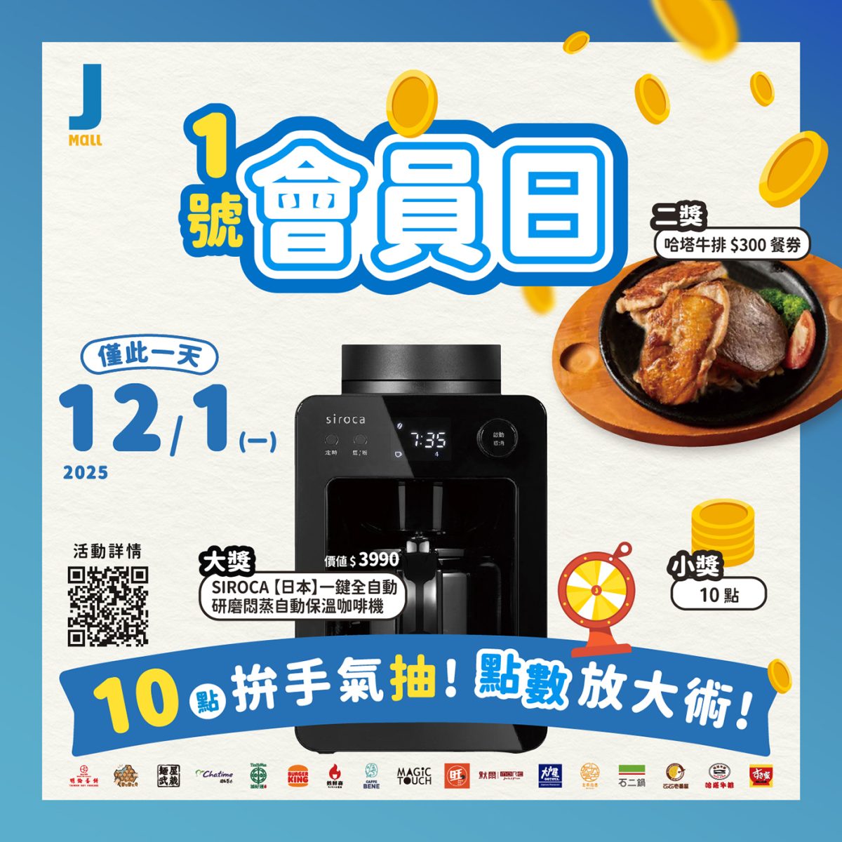 親愛的JMall會員,每月1日會員日開跑!本次我們準備了超級大禮,讓您的點數價值瞬間爆棚!